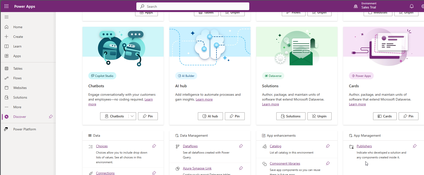Instead of selecting the solutions in the Menu, you might have to select …More and the Discover all button.